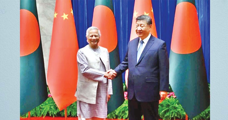 শান্তি, সমৃদ্ধি ও স্থিতিশীলতা প্রতিষ্ঠায় চীনকে আরো জোরালো ভূমিকা রাখার আহ্বান জানিয়েছেন বাংলাদেশের অন্তর্বর্তী সরকারের প্রধান উপদেষ্টা প্রফেসর ড. মুহাম্মদ ইউনূস। গতকাল শুক্রবার সকালে বেইজিংয়ের গ্রেট হল অব দ্য পিপলে চীনের প্রেসিডেন্ট শি জিনপিংয়ের সঙ্গে অনুষ্ঠিত দ্বিপাক্ষিক বৈঠকে তিনি এই আহ্বান জানান। বৈঠকে উভয় নেতা দ্বিপাক্ষিক স্বার্থ সংশ্লিষ্ট বিভিন্ন বিষয় নিয়ে আলোচনা করেন। প্রফেসর ইউনূস তার বক্তব্যের শুরুতে বাংলাদেশের জনগণের পক্ষ থেকে চীনের প্রেসিডেন্ট শি জিনপিংকে আন্তরিক শুভেচ্ছা জানান। বাংলাদেশে জুলাইয়ের গণঅভ্যুত্থানের কথা উল্লেখ করে তিনি বলেন, এই অভ্যুত্থান ‘নতুন বাংলাদেশ’ গঠনের পথ সুগম করেছে। চীনের সঙ্গে তার দীর্ঘ সম্পর্কের কথা স্মরণ করে প্রধান উপদেষ্টা বলেন, তিনি সেখানে গ্রামীণ ব্যাংক ও সামাজিক ব্যবসার প্রচলনের সঙ্গে যুক্ত ছিলেন। বৈঠকের সময় তিনি রোহিঙ্গা সঙ্কট নিয়ে আলোচনা করেন এবং মিয়ানমারে রোহিঙ্গাদের নিরাপদ ও সম্মানজনক প্রত্যাবর্তনে চীনের শক্তিশালী ভূমিকা রাখার আহ্বান জানান। প্রধান উপদেষ্টা প্রফেসর ইউনূস এবং চীনের প্রেসিডেন্ট শি জিনপিং নিজ নিজ পক্ষের নেতৃত্ব দেন। ড. ইউনূস গতকাল বেইজিংয়ের দ্য প্রেসিডেন্সিয়ালে চীনা ব্যবসায়ীদের সঙ্গে একটি বিনিয়োগ সংলাপে অংশ নিয়েছেন। এই আয়োজনের মূল লক্ষ্য হলো বাংলাদেশে ব্যবসাবান্ধব পরিবেশ সম্পর্কে চীনা বিনিয়োগকারীদের ধারণা প্রদান এবং বাংলাদেশে চীনা বিনিয়োগ আকর্ষণ করা। প্রধান উপদেষ্টা একই ভেন্যুতে তিনটি গোলটেবিল আলোচনায় অংশ নেন, যার বিষয়বস্তু হলোÑ টেকসই অবকাঠামো ও জ্বালানি বিনিয়োগ, বাংলাদেশ- উৎপাদন ও বাজারের সুযোগ এবং সামাজিক ব্যবসা, যুব উদ্যোক্তা ও থ্রি জিরো বিশ্বের ভবিষ্যৎ। বৈঠকে তিনি বিভিন্ন কোম্পানির প্রধান নির্বাহী কর্মকর্তা, সামাজিক ব্যবসা ক্ষেত্রের অভিজ্ঞ ব্যক্তিবর্গ, চীনের স্বনামধন্য কোম্পানির উচ্চপদস্থ কর্মকর্তাদের সঙ্গে মতবিনিময় করবেন। অধ্যাপক ইউনূস চীনে বাংলাদেশের রাষ্ট্রদূতের আয়োজনে এক নৈশভোজেও অংশ নেবেন।